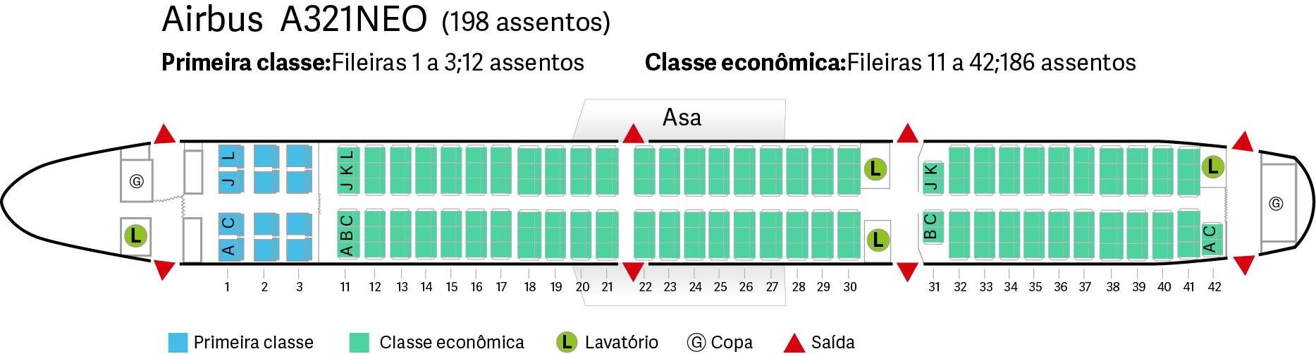 | Aeronave | Total de assentos | Classe executiva | Classe econômica |