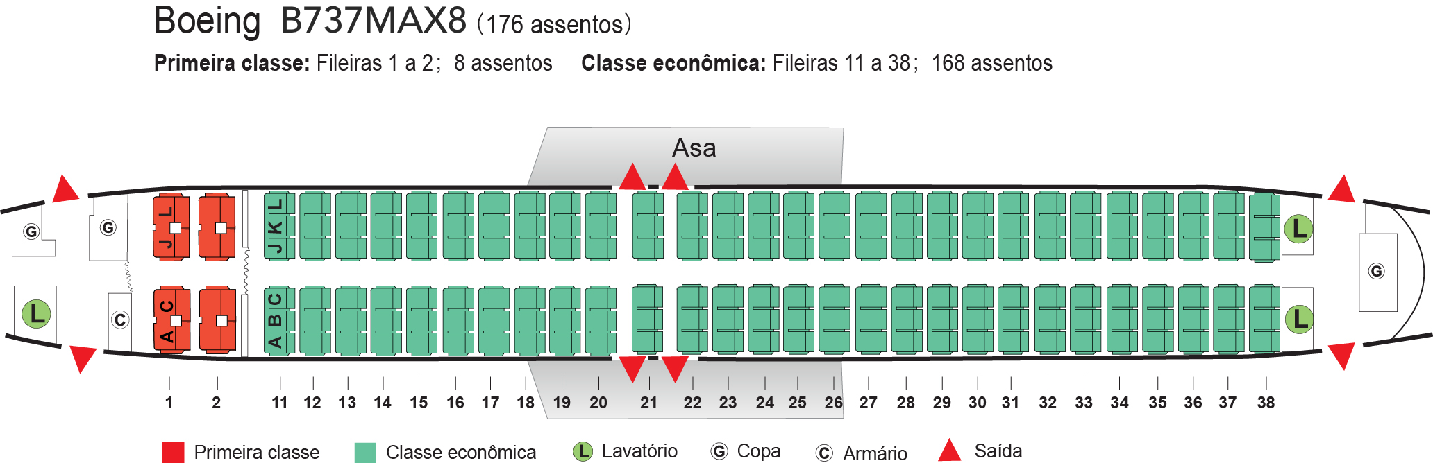| Total de assentos | Primeira classe | Classe econômica |